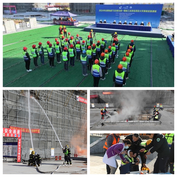 【應急救援演練】 項目部制定了應急救援預案,建立了應急救援小組,根據項目施工特點編制各類安全應急預案,配備了應急救援物資和設備,并按計劃開展應急救援專項演練。項目自開工以來組織了大型火災救援消防演練、高墜、觸電等應急救援演練,充分還原應急實戰場景,提升綜合預防能力。 大型火災救援消防演練 生活區火災逃生應急救援演練